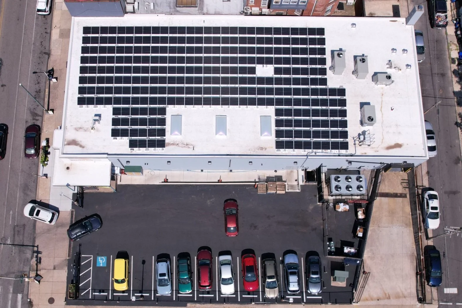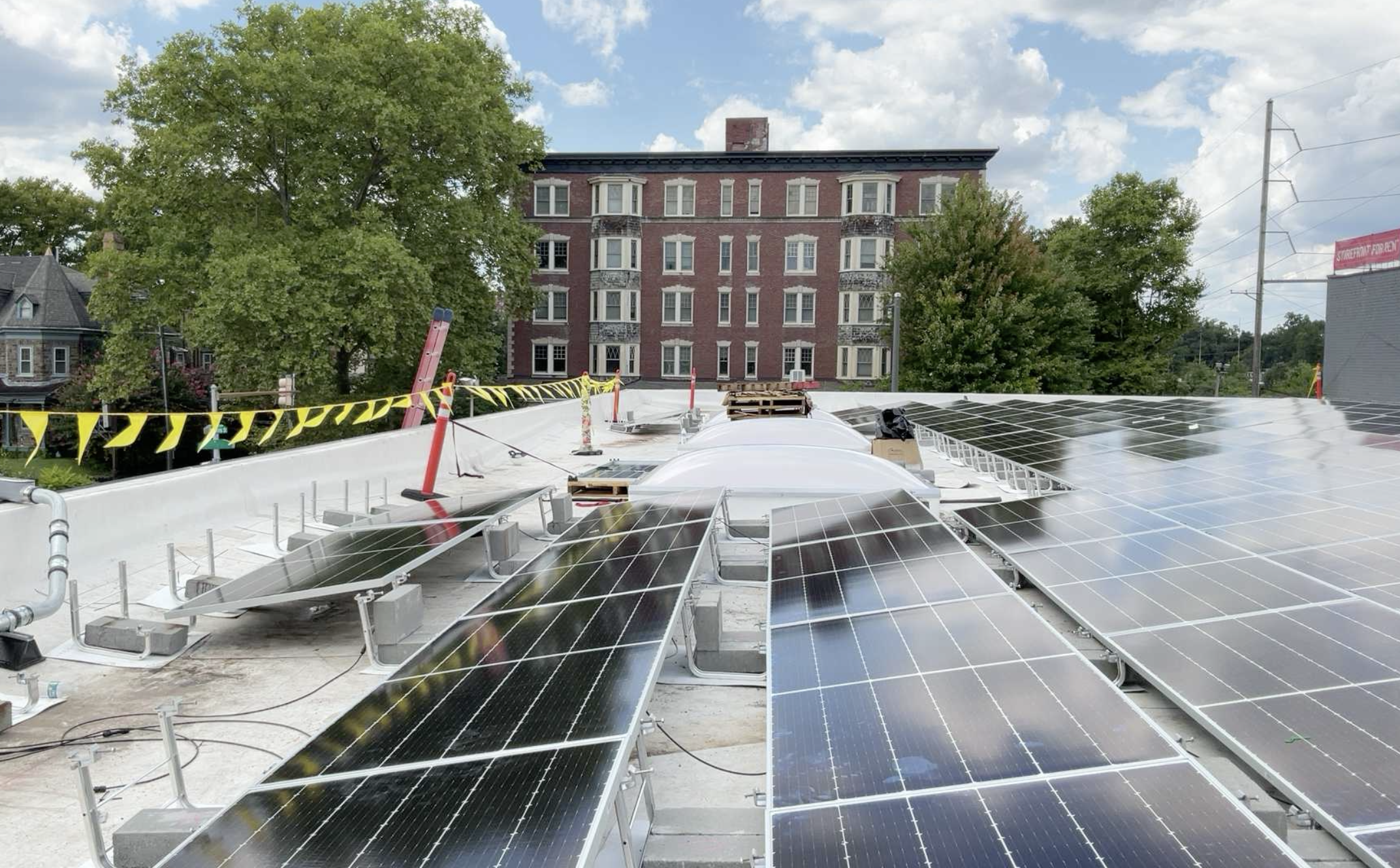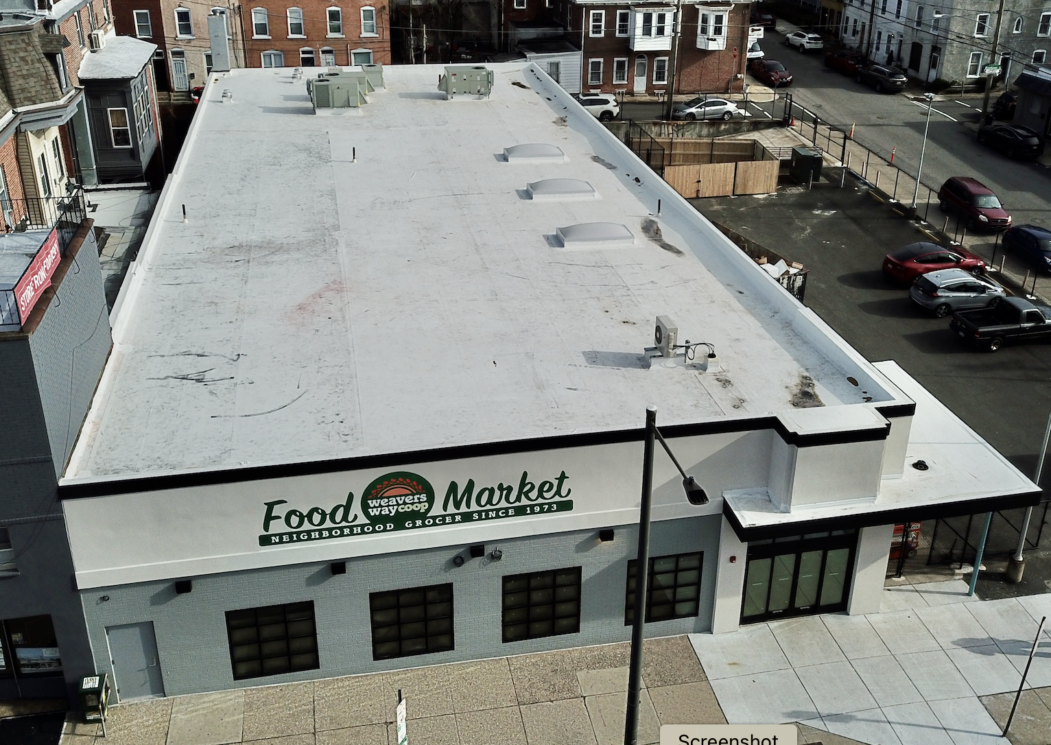 Weavers Way Coop opened a new store in the Germantown section of Philadelphia. The Clean Energy Co-op has installed140 panels for a 67.9 kW solar array on the rooftop using a Power Purchase Agreement to finance the project. The estimated annual production is 81MWh which will be used directly within the store. This should cover about 22% of the electricity load. Because the store is a grocery store, the electricity demand is high, powering the many refrigerators and freezers.