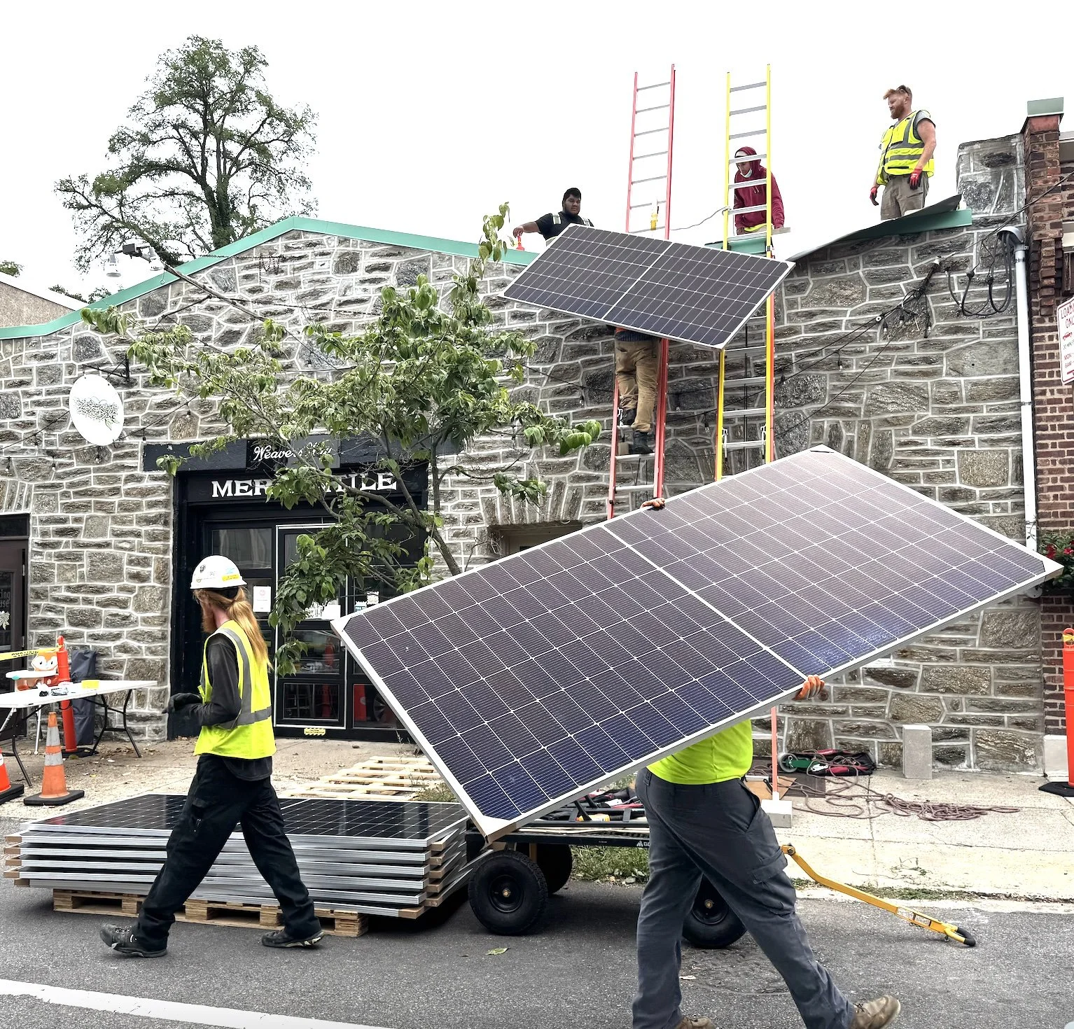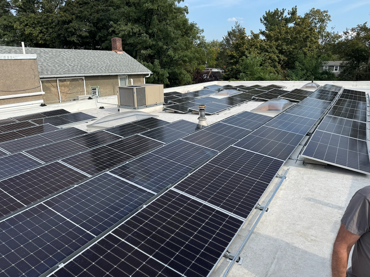 The building has a flat roof and will support a solar array with 60 panels for a system size of 35.1 kW. Installation was completed on 9/23/25. City building and electrical inspections are complete. We are now awaiting PECO’s out meter installation and Permission to Operate