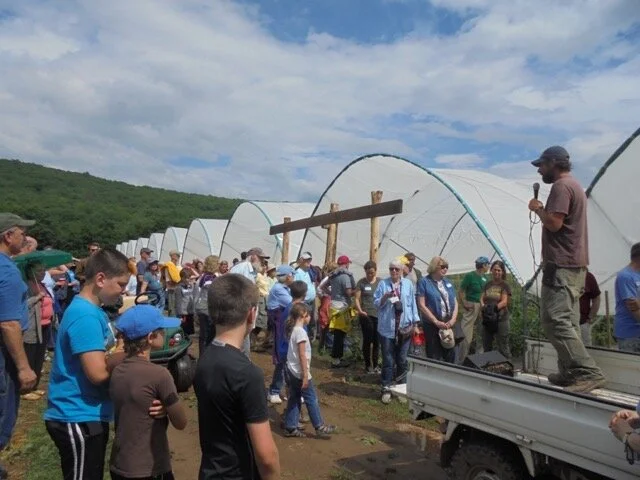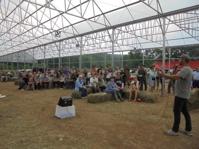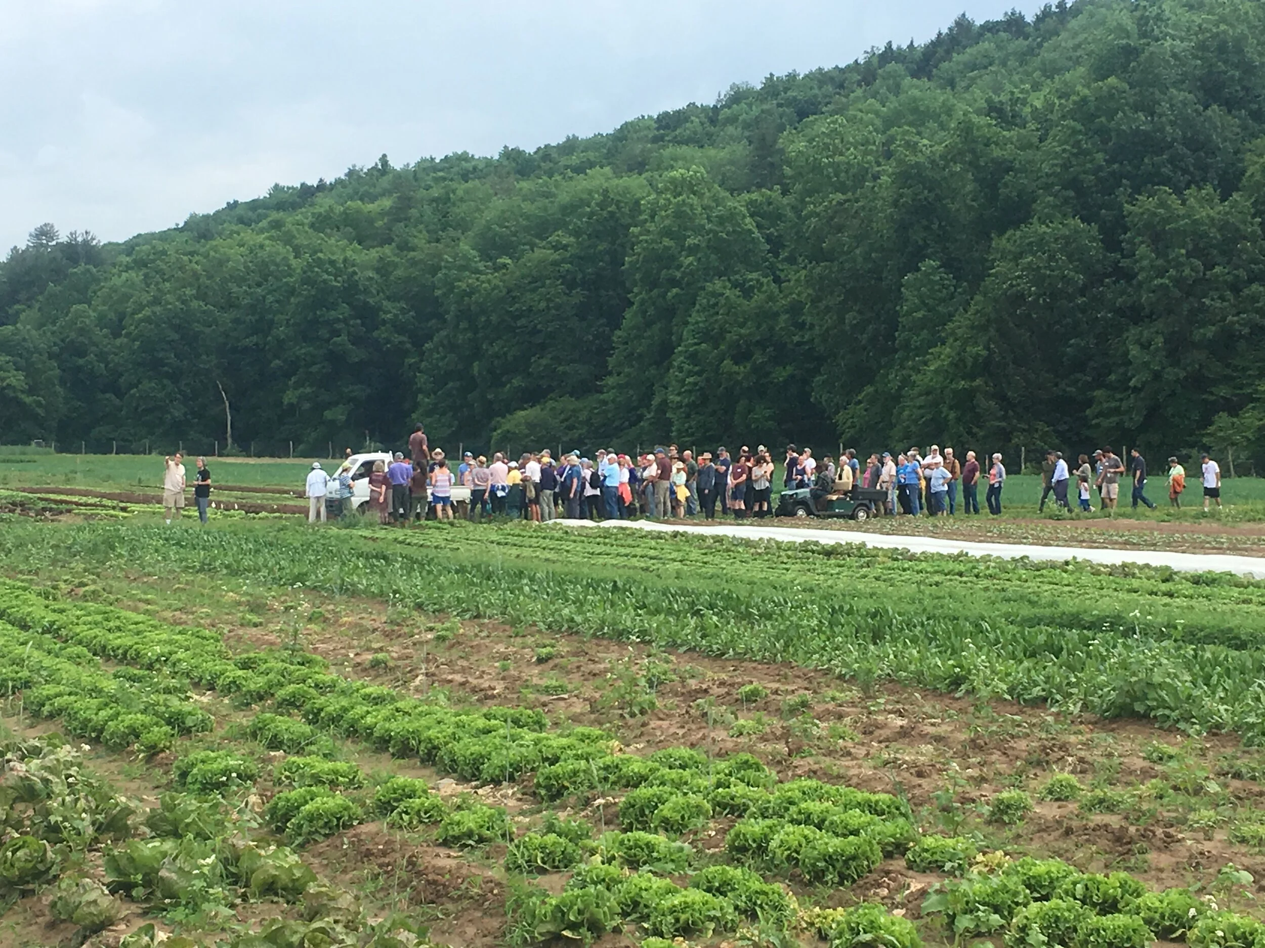 June 25, 2018: We had a wonderful joint event with Willow Wisp Organic Farm yesterday, with around 175 people in attendance! Greg Swartz spoke in detail about the practice of organic farming, and their recent move to this expanded location. The sun came out at just the right times, even if the rain on the greenhouse roof delayed us for a bit when discussing the new 50kW solar installation. Thanks to the whole crew at Willow Wisp and the many volunteers who prepared some delicious farm fresh dishes and brought desserts! Nothing beats sharing a meal with people.